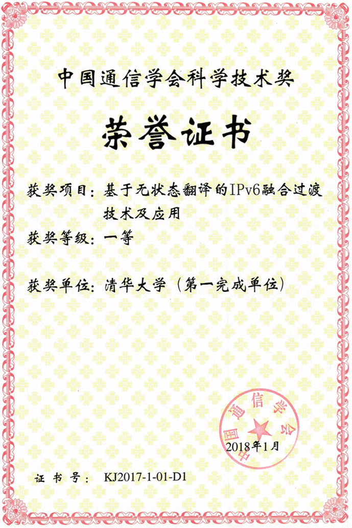 及應用"獲得2017年中國通信學會技術發明獎一等獎。